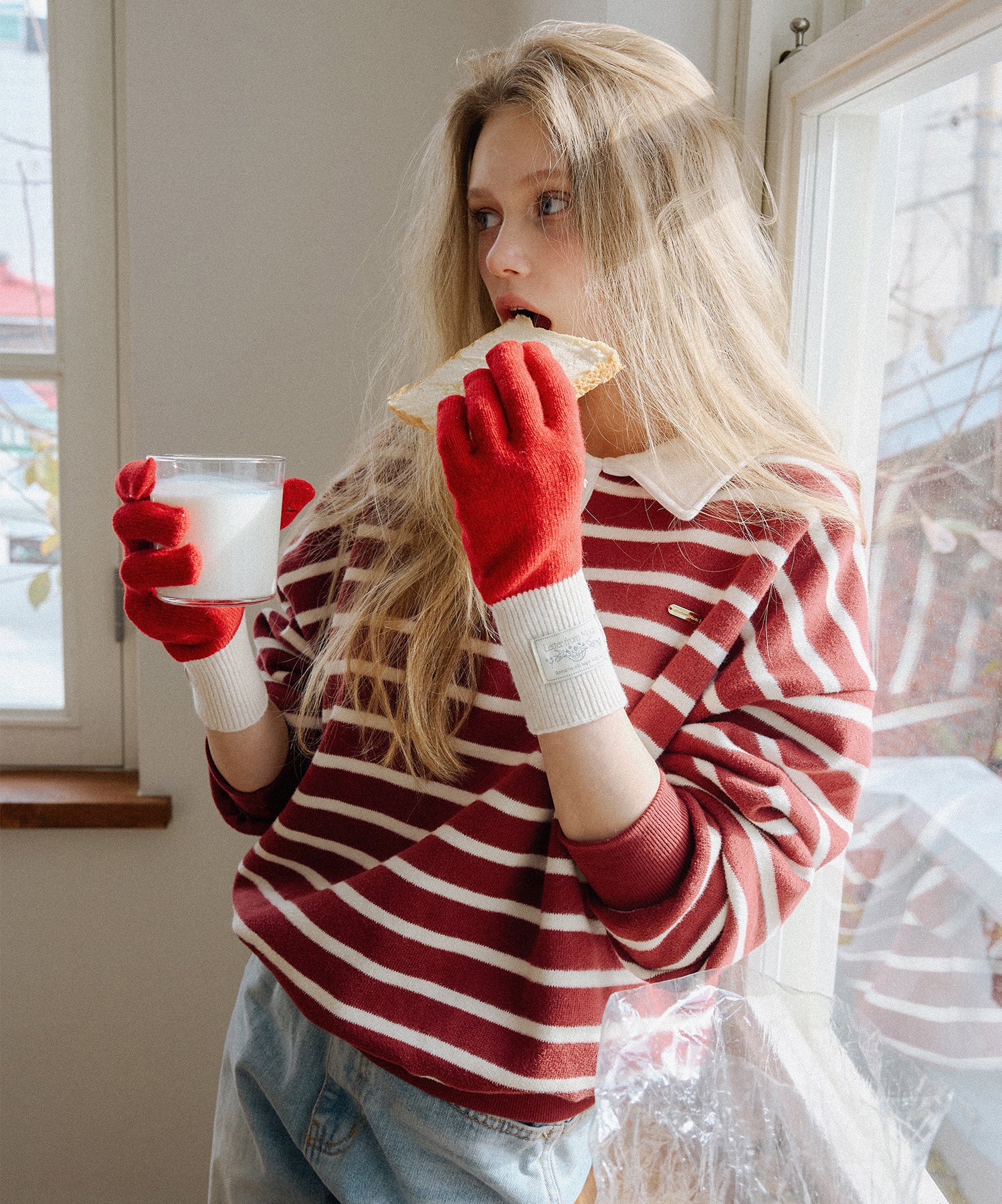 LETTER FROM MOONならではの冬のムードを落とし込んだ、バイカラーのニットグローブです。