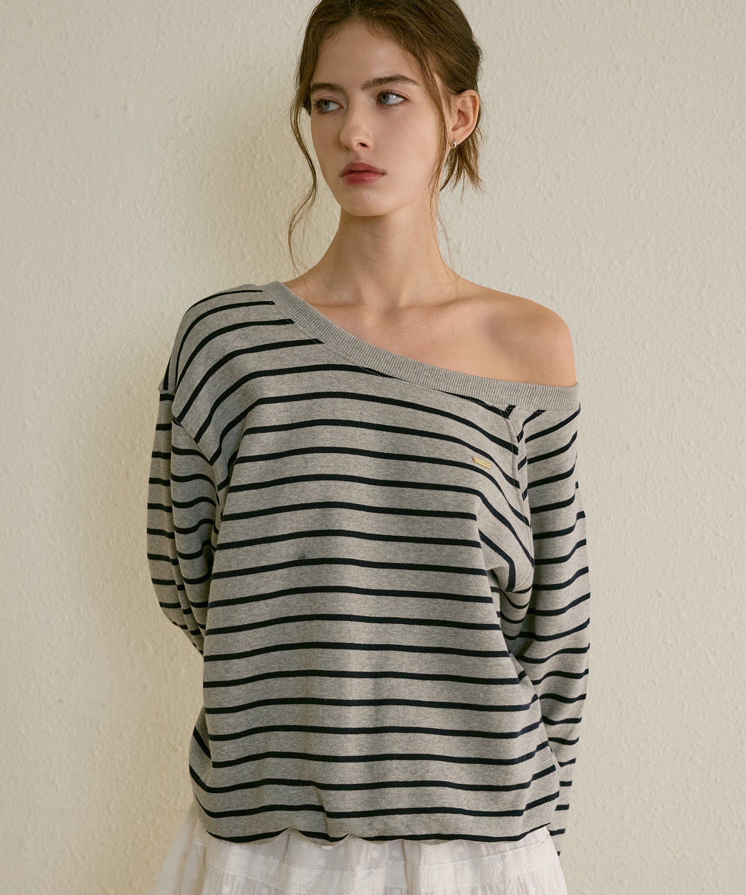 LETTER FROM MOONのSSベストアイテムである「Edin Off-Shoulder Sweatshirt」のストライプバージョンです。