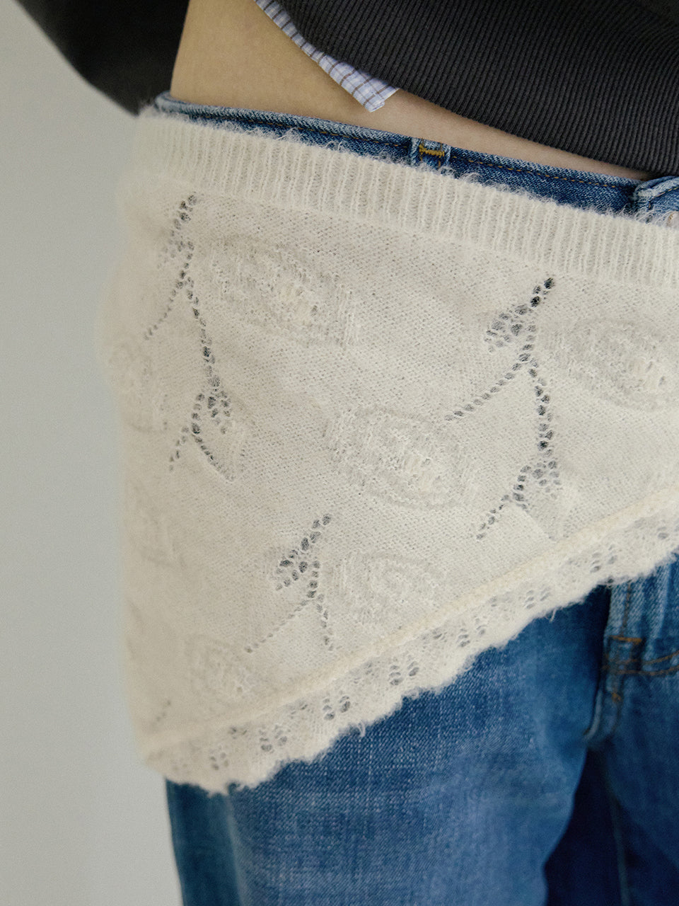 繊細なスカラップ編みとフラワーパンチングディテールが映えるレイヤードスカートです。