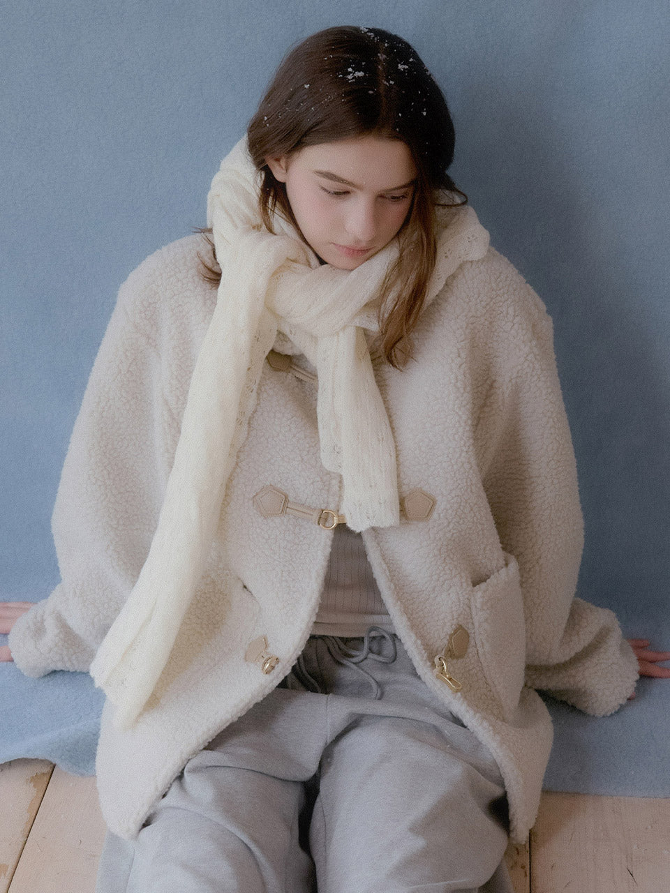 表面のシアリング素材が季節感を引き立て、やわらかく温もりのある雰囲気を演出します。