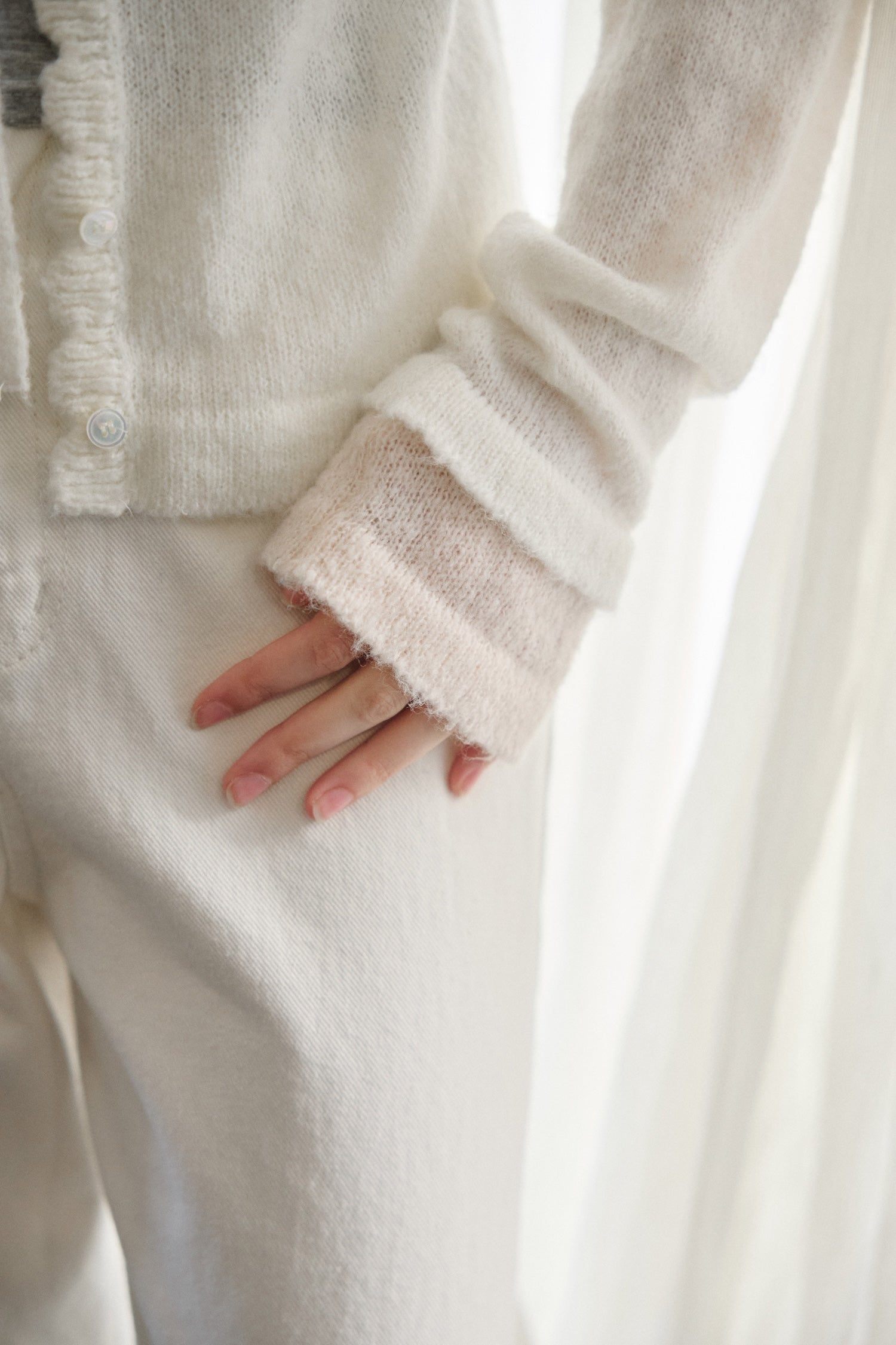 ウール混紡の糸を使用しているため、ふんわりと暖かく、高級感のある着心地をお楽しみいただけます。