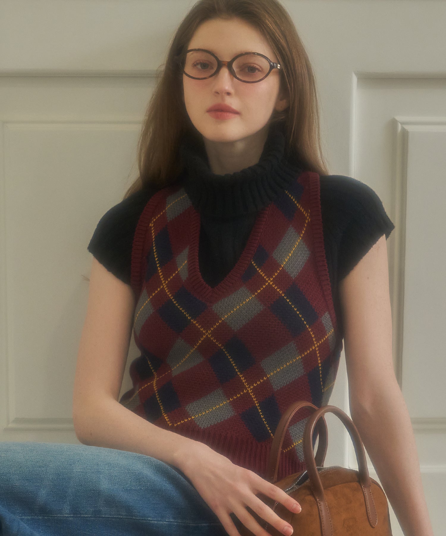 Halter-neck Argyle Wool Vest