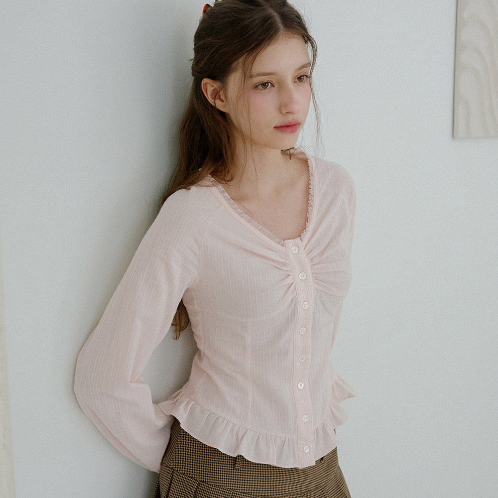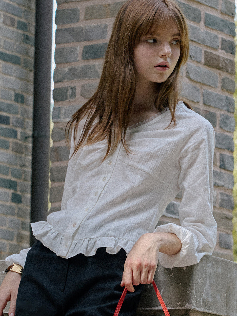 オーガンジーフリルレースがアクセントになったブラウスです。