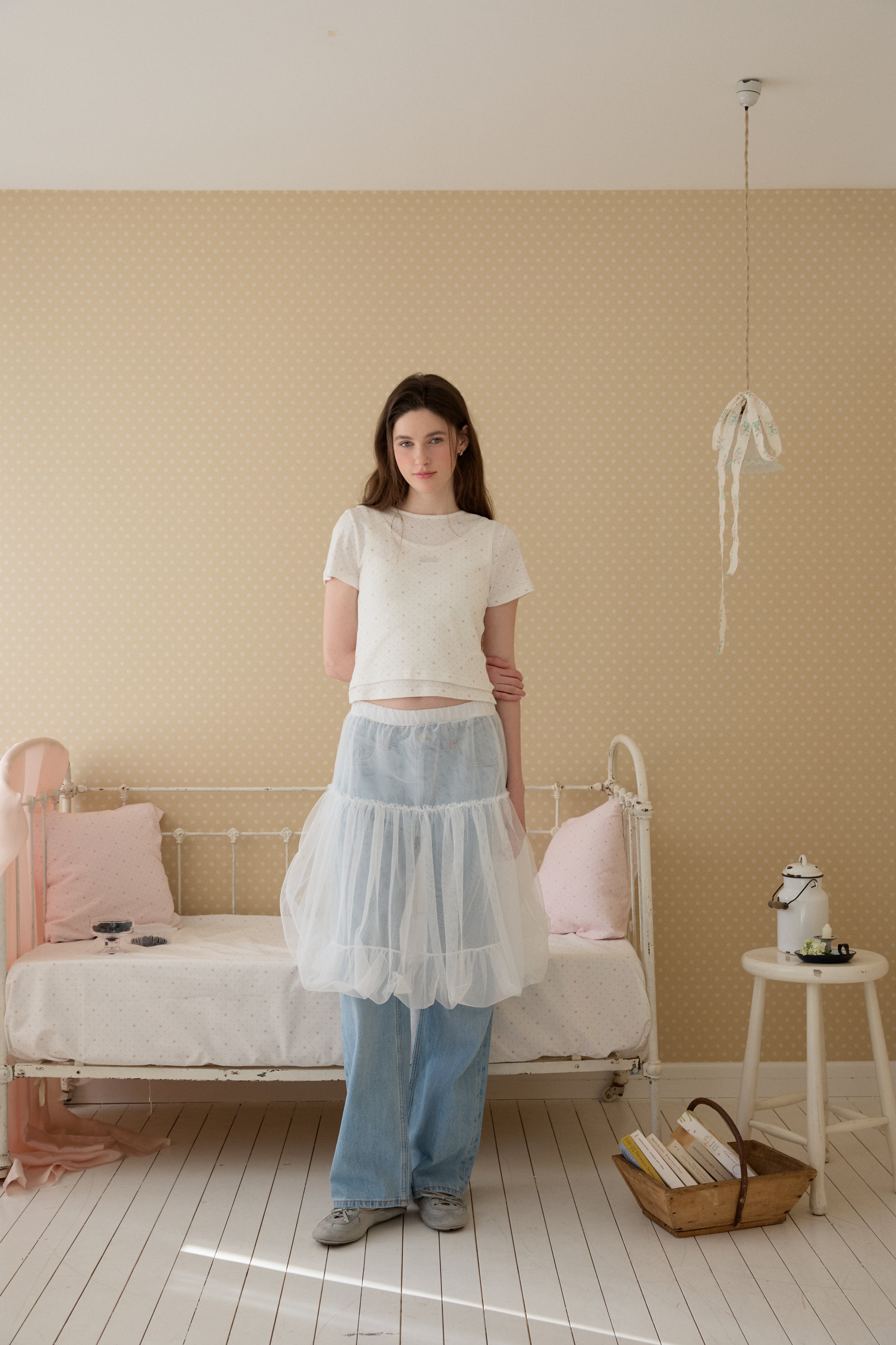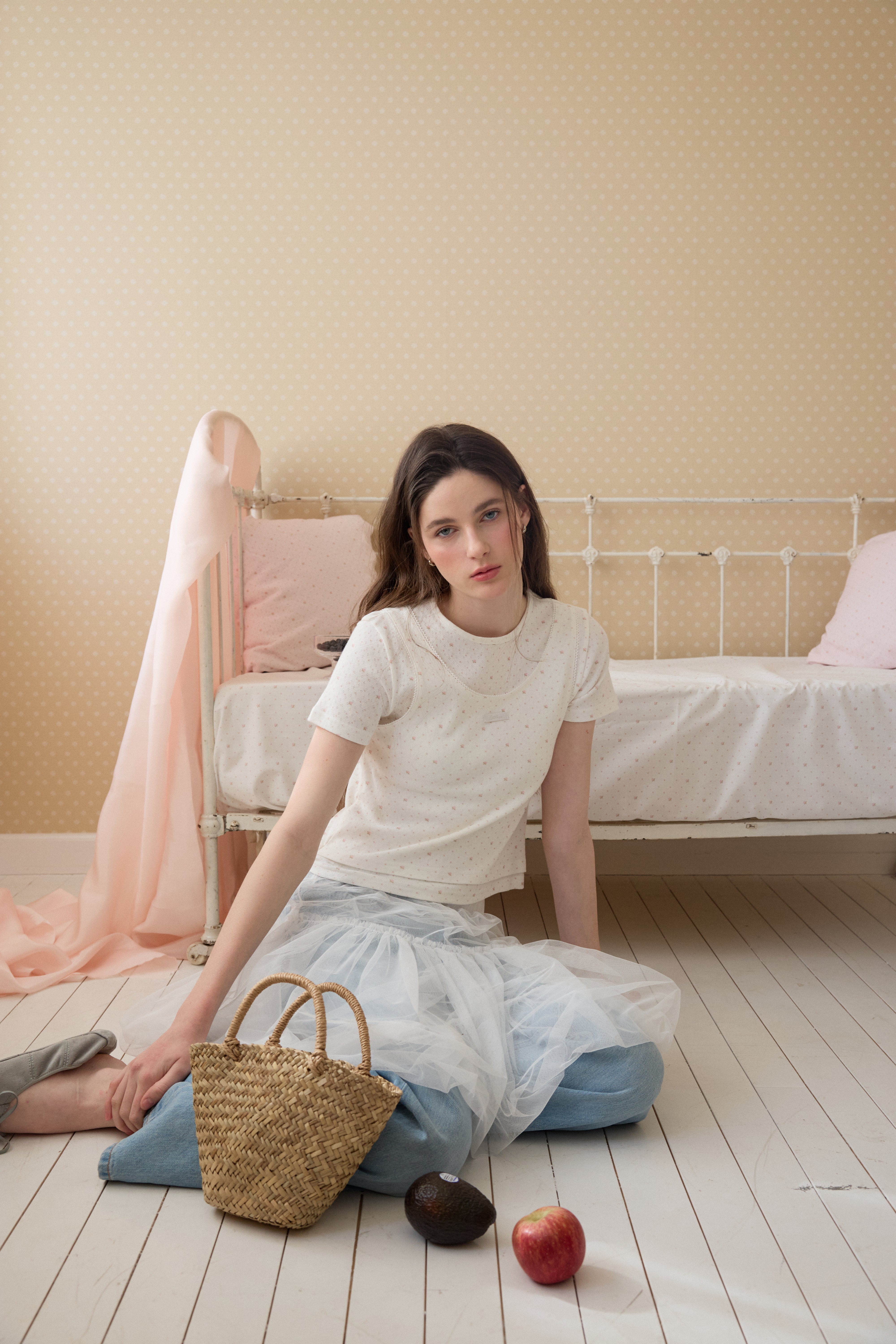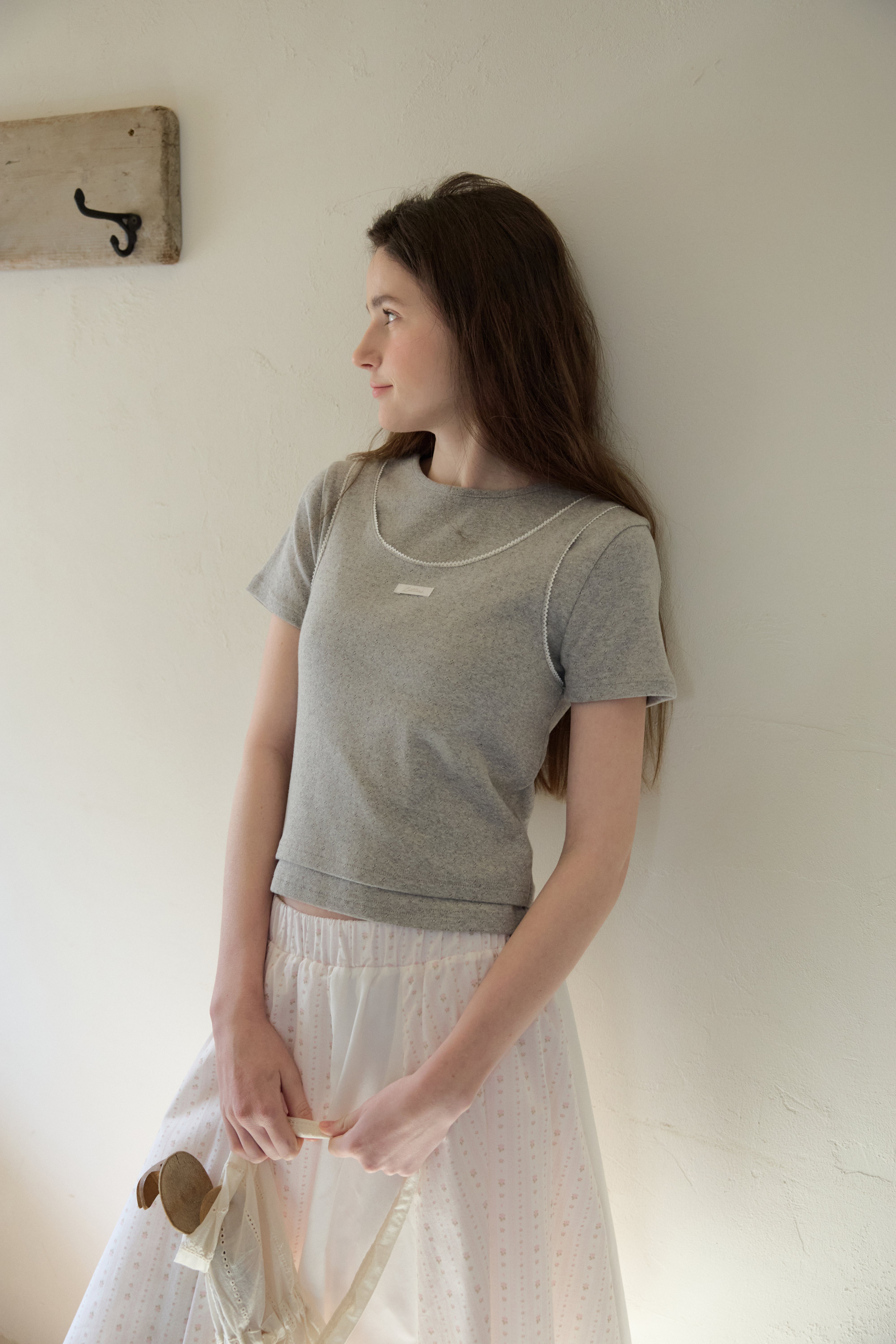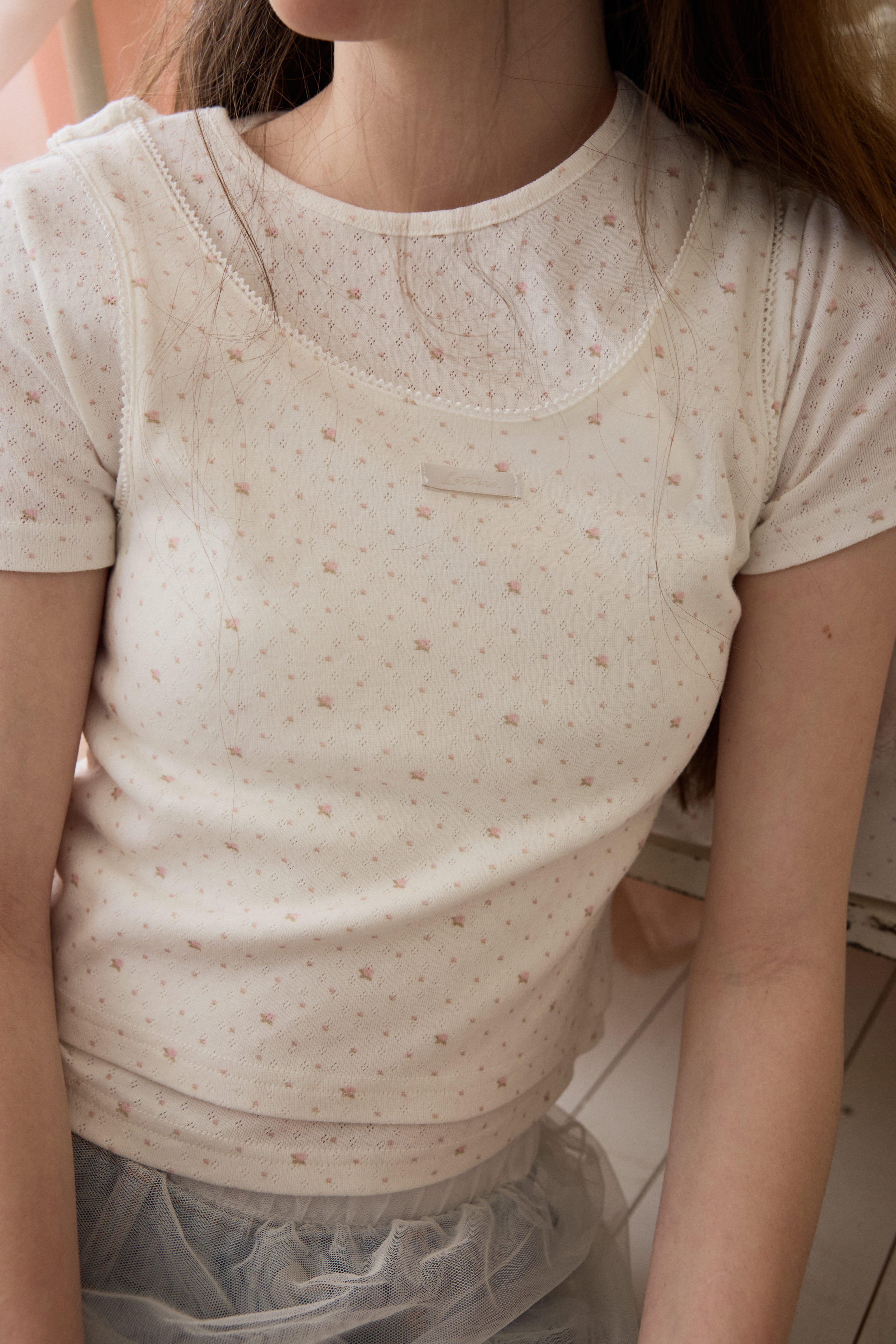 [LETTER FROM MOON × dasique] Palms Layered Lace Short-Sleeve T-Shirt