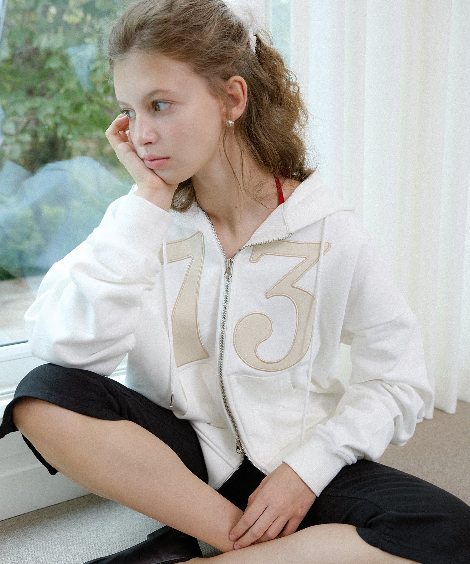 LETTER FROM MOONならではのムードを込めた「73パッチポイントフーディージップアップ」です。