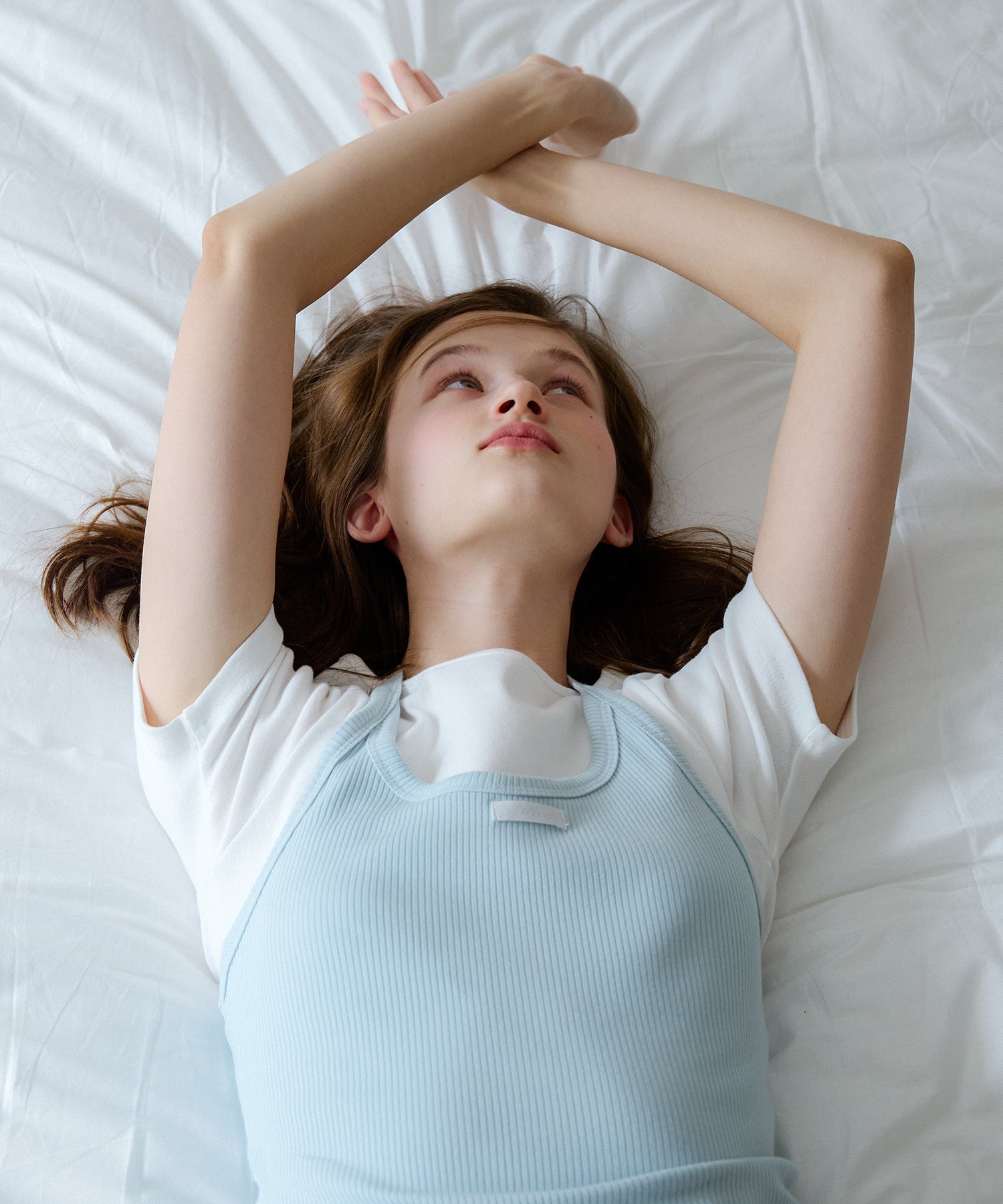 エッセンシャルラインのラベルがアクセントとなり、レイヤードで合わせれば多彩なスタイリングを楽しめます。