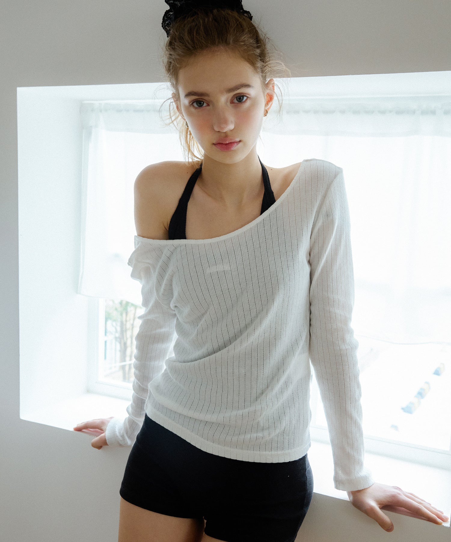 コットン×モダール素材で柔らかな肌触りを提供し、さりげないパンチング生地が心地よくフェミニンなスリムフィットを完成させます。