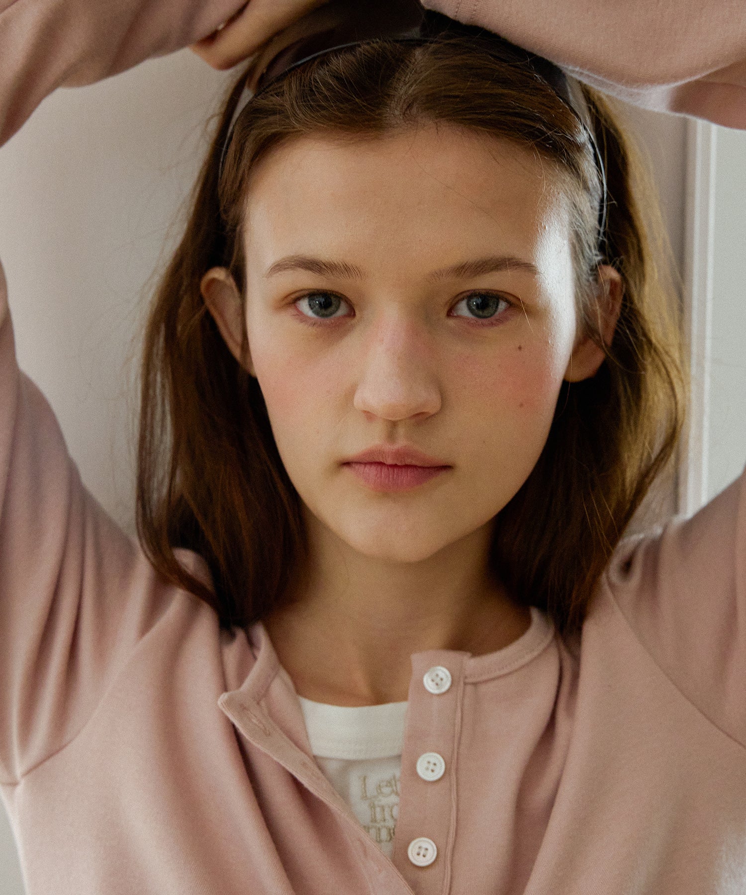 一枚で着てもコーディネートが完成するアイテムで、ボタンを開けたときに覗くシルバー刺繍のロゴがポイント。