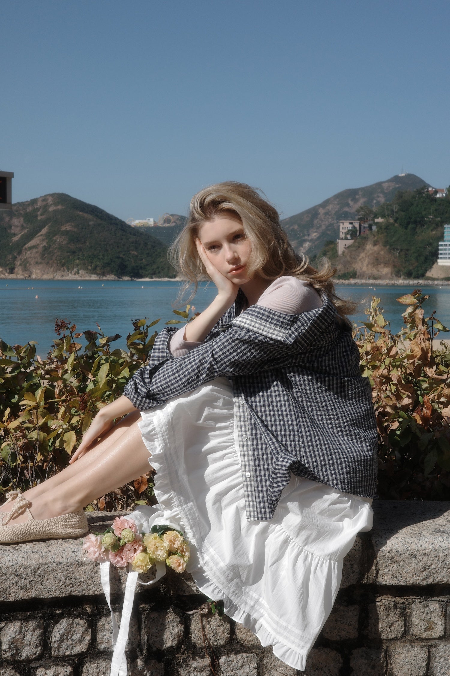 フロントには実用的なポケットディテールをプラスしてデザインのバランスを整え、ボタンには「Letter From Moon」の刻印入りシェルボタンを使用し、さりげない高級感を添えました。
