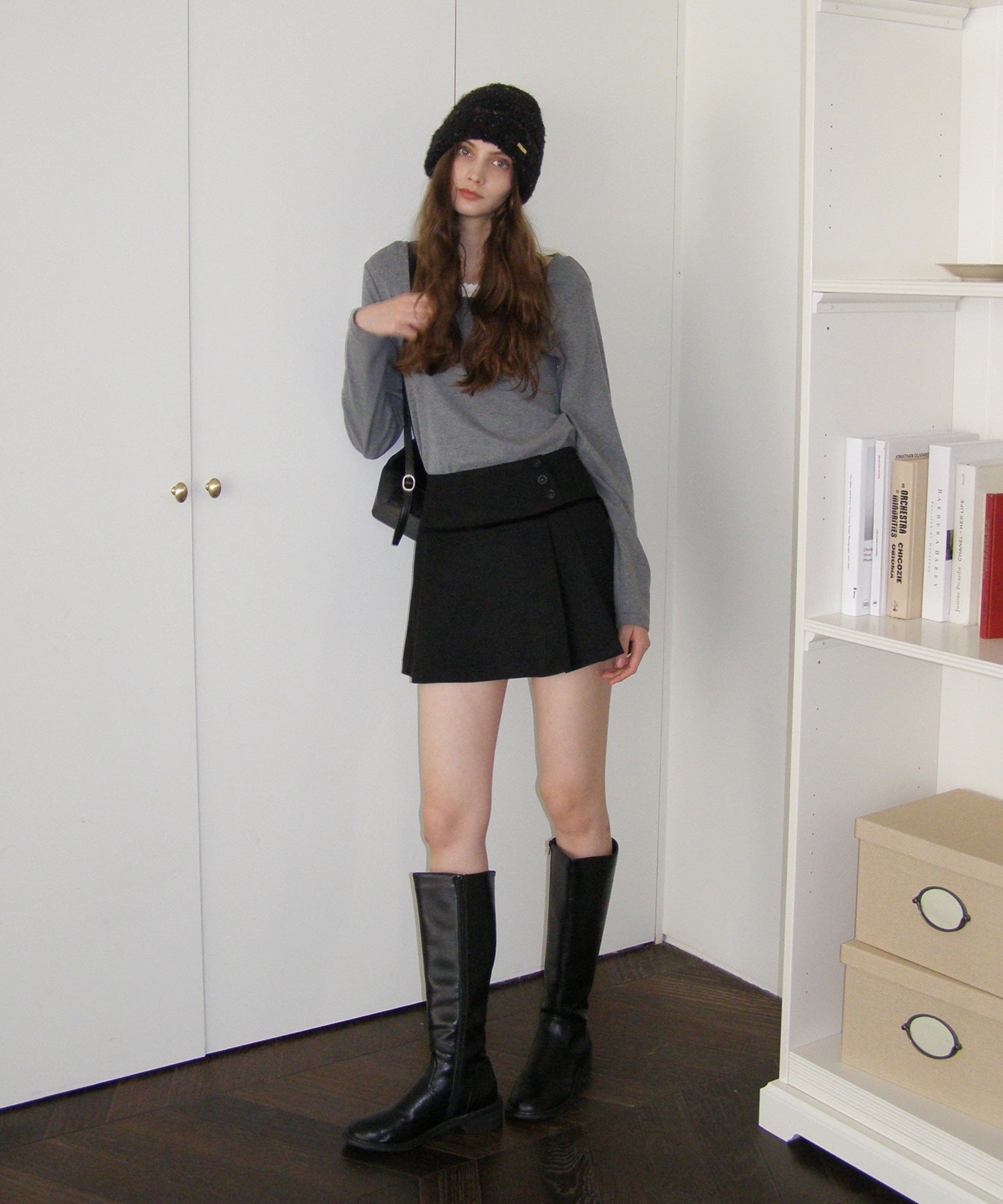 ハイウエストに3つのボタンをアクセントとして添え、洗練された雰囲気をプラス。