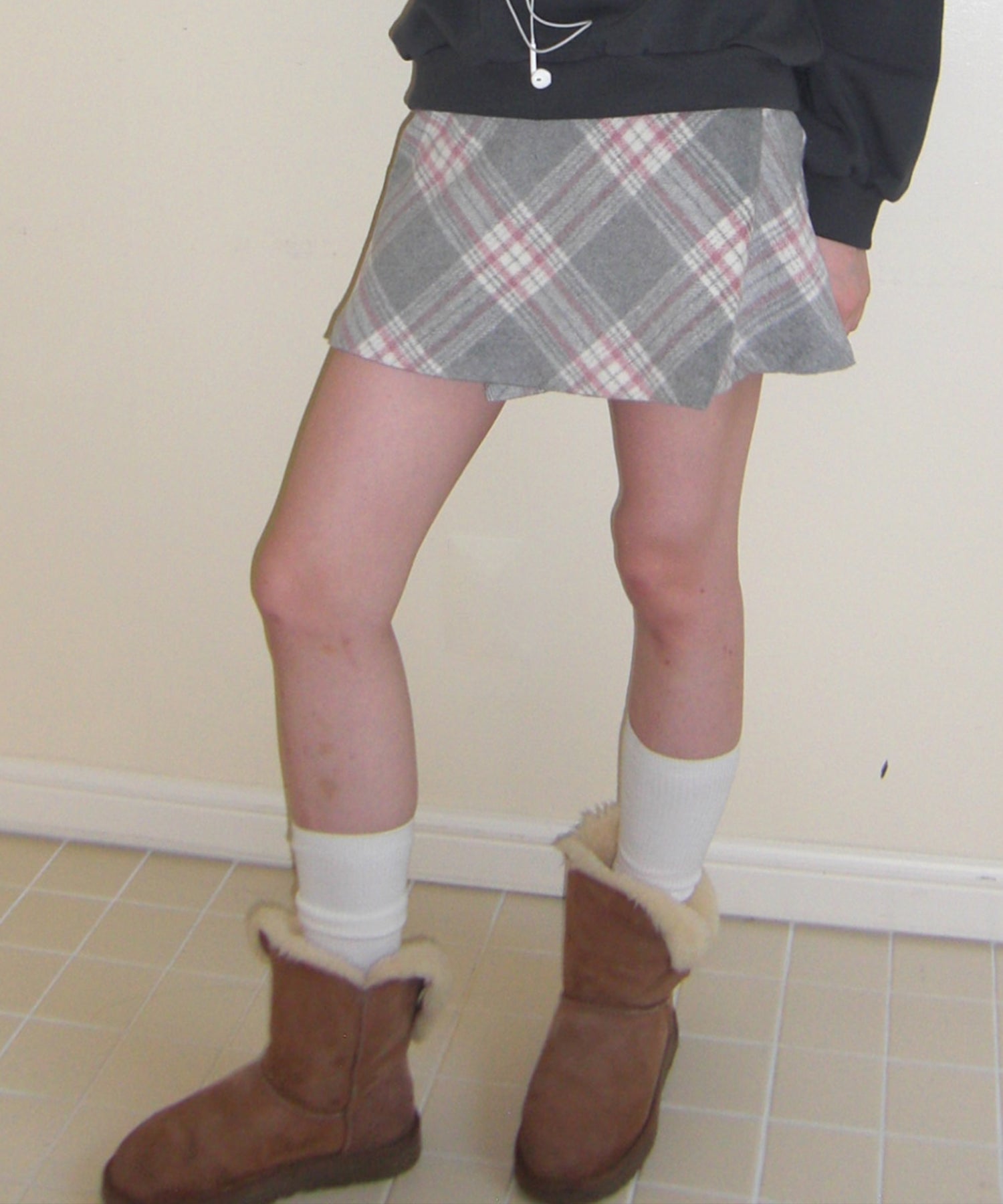 独特なカラー配色のチェックパターンがユニークなラップスカートです。