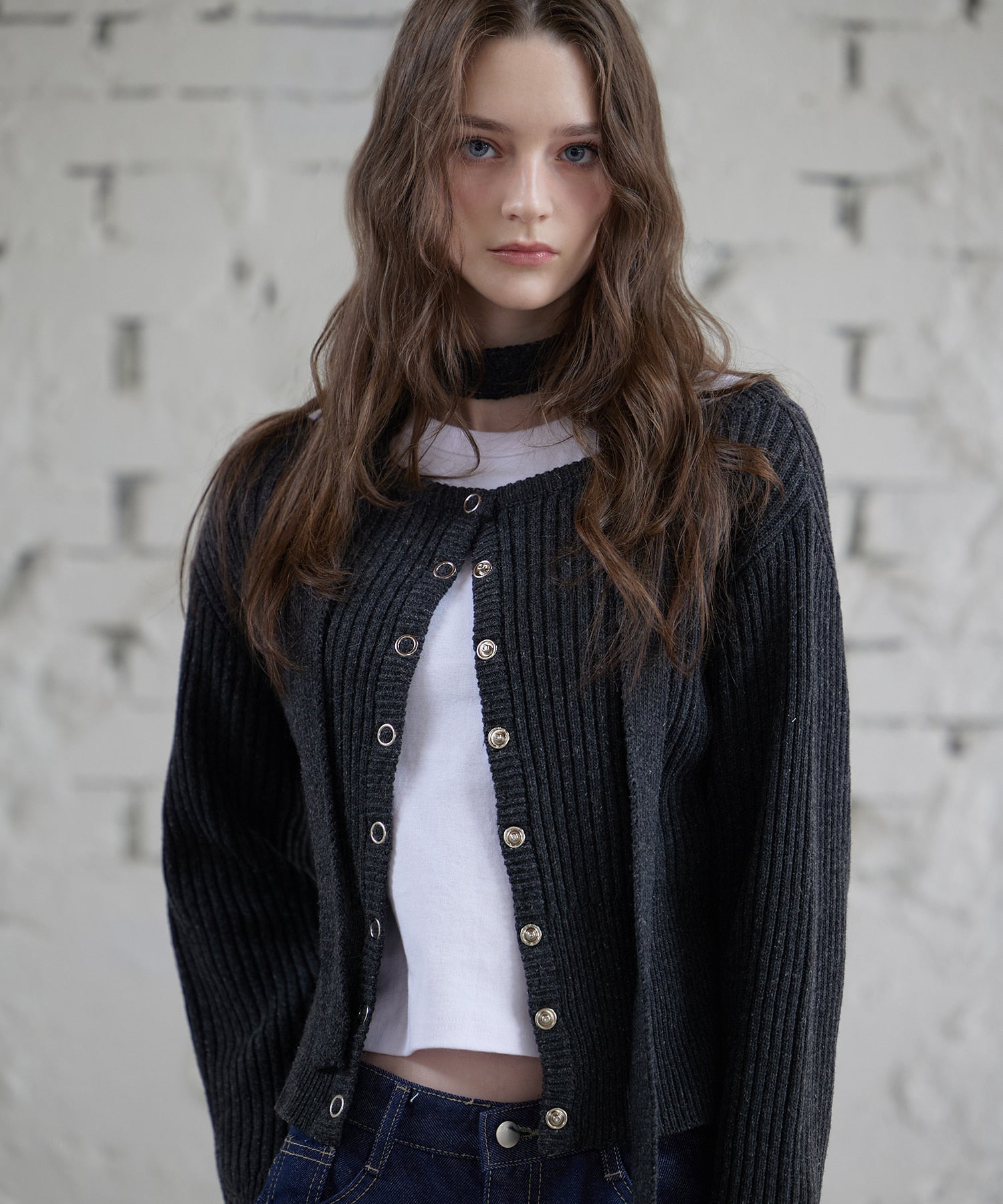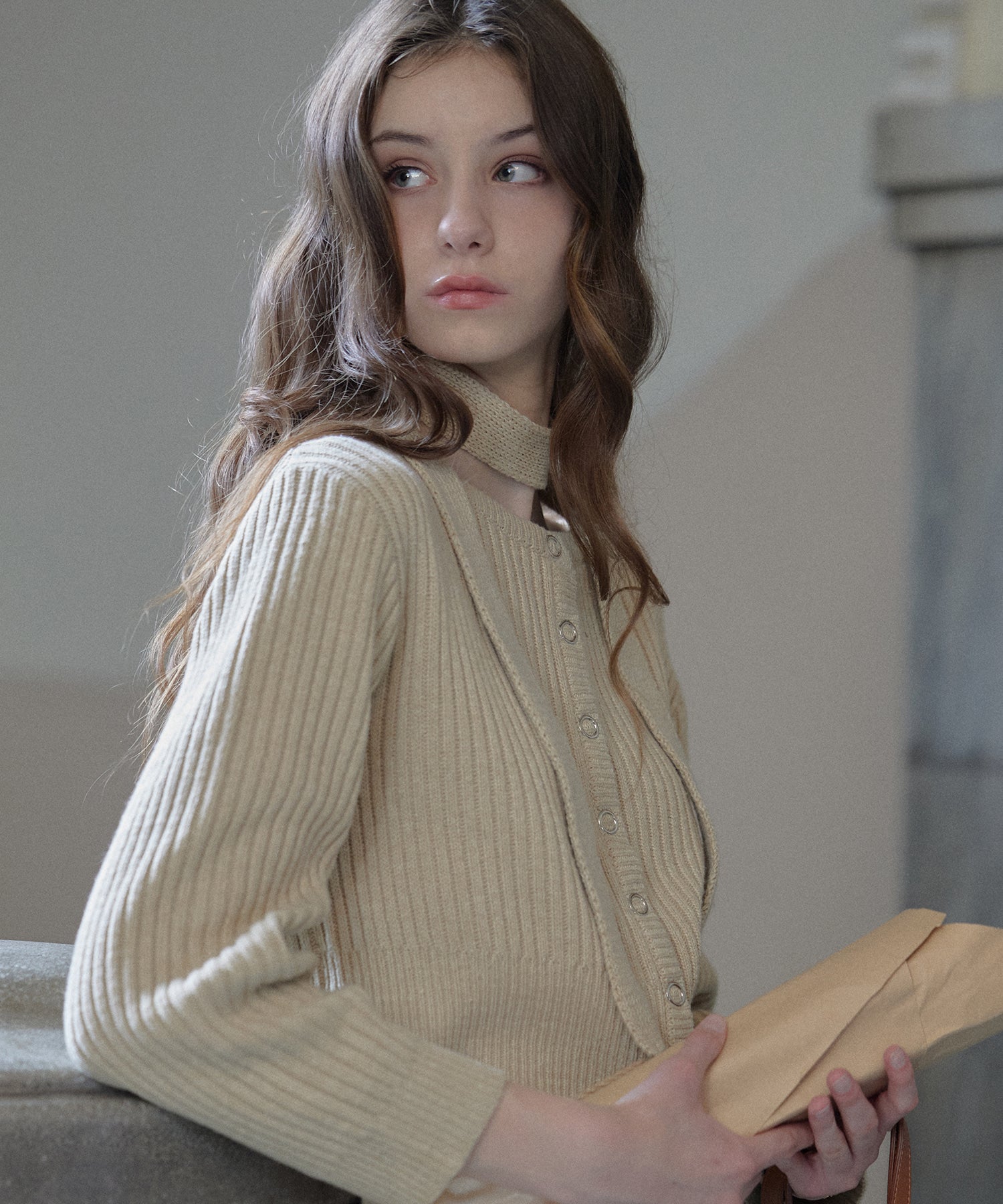 スカーフと合わせて着用できるボトルネックウールカーディガンです。