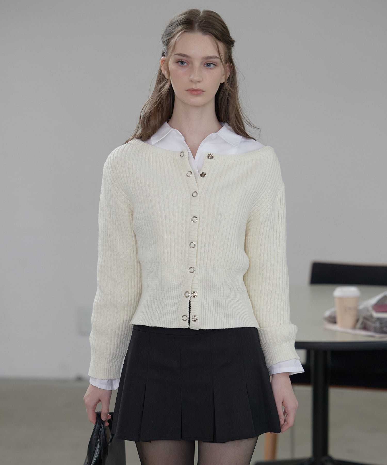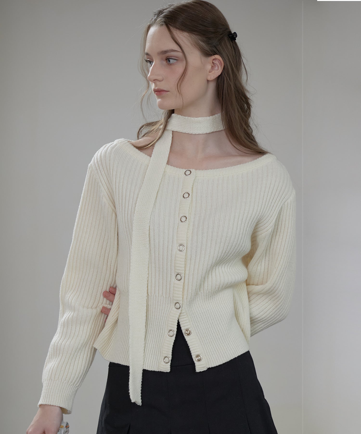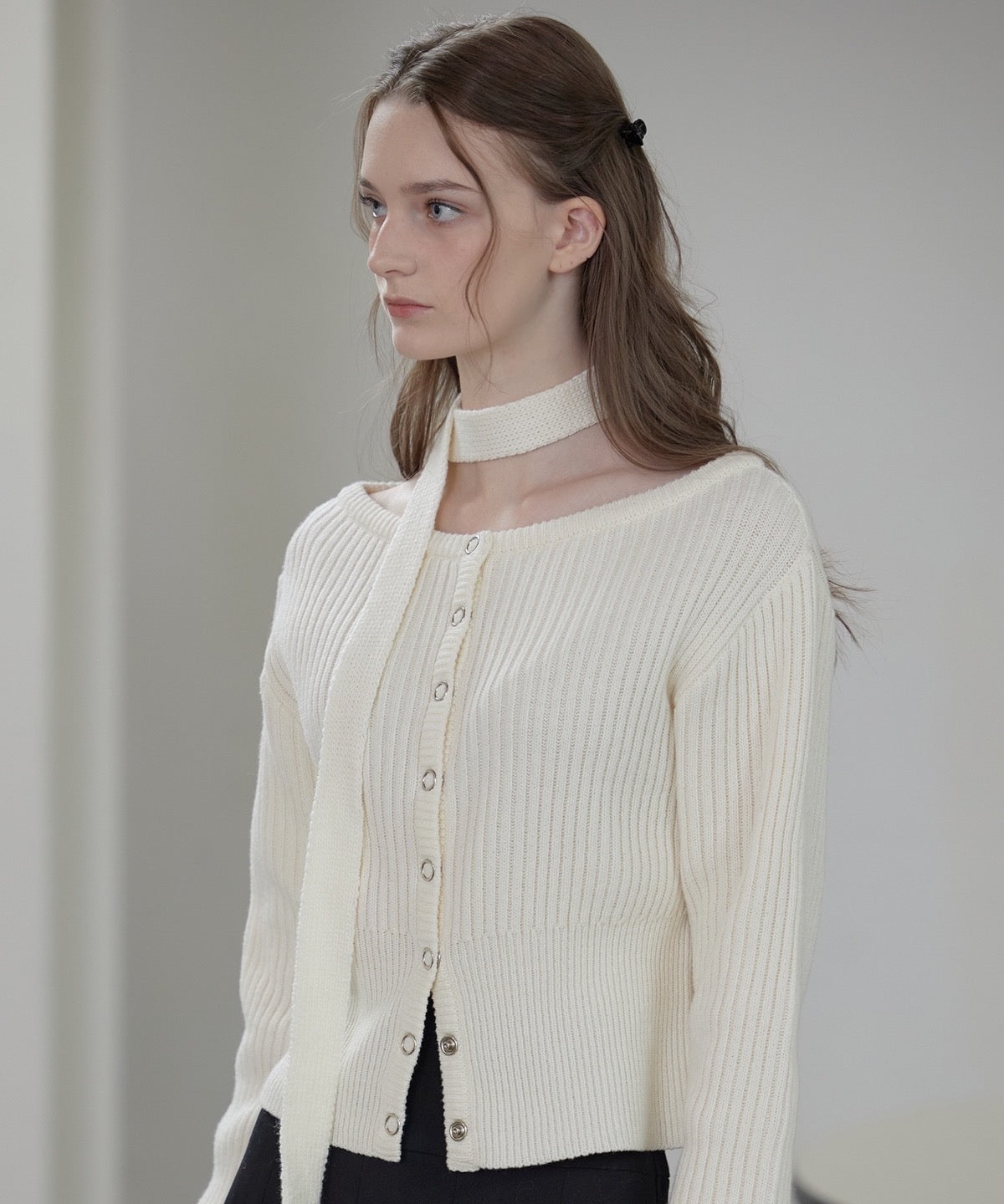 [Scarf Set] Sonnet Boat-neck Wool Cardigan