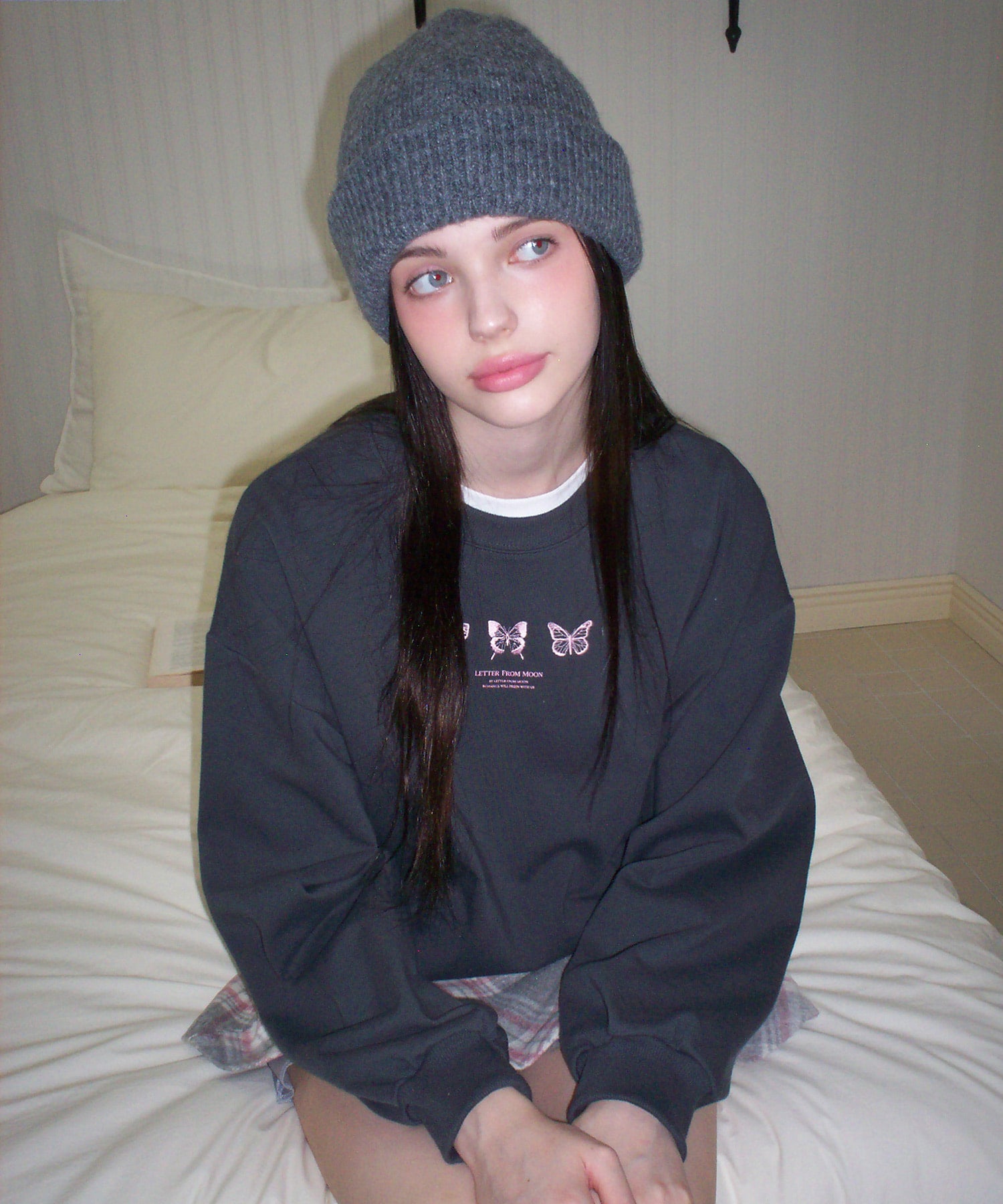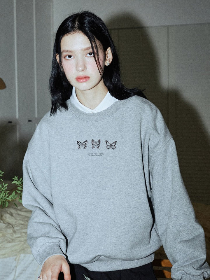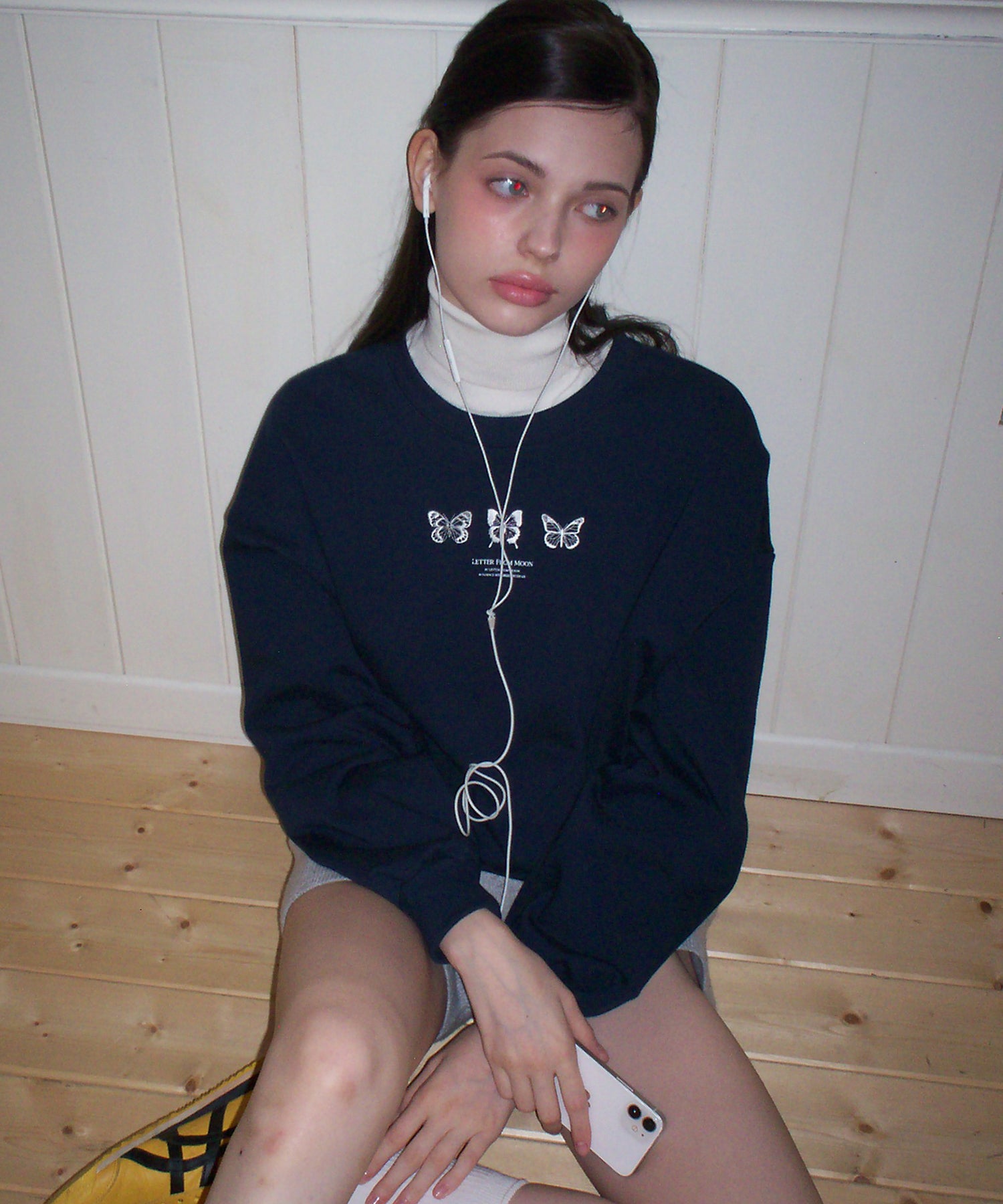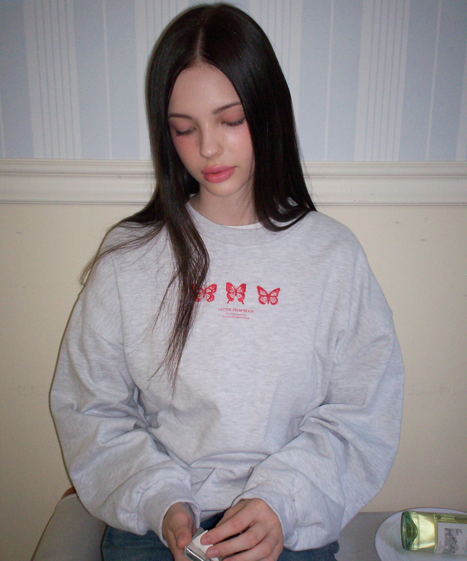 フロントには3匹の蝶とLETTER FROM MOONのロゴ刺繍を施し、バックには蝶とロマンティックなフレーズをプリントしたスウェットです。